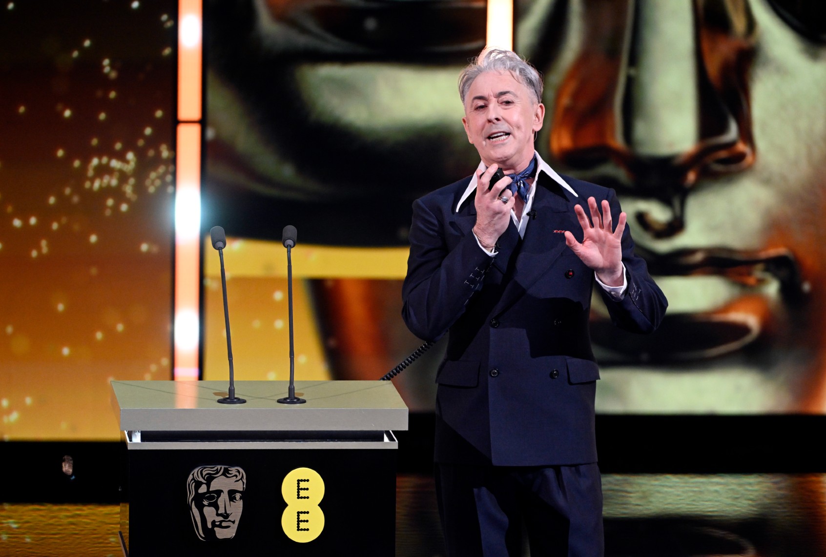 (Stuart Wilson/BAFTA/Getty Images for BAFTA) Host Alan Cumming speaks on stage during the EE BAFTA Film Awards